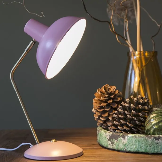 Retro tafellamp roze met brons – Milou