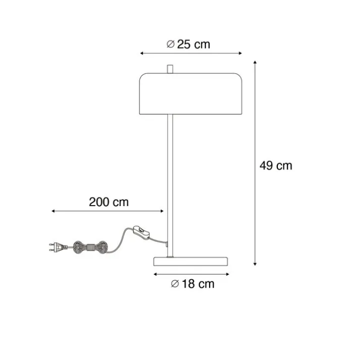 Tafellamp Jinte voelt zich helemaal thuis in een retro interieur. De lamp is gemaakt van staal en is afgewerkt in het zwart. Jinte heeft een diameter van 25 cm en een hoogte van 49 cm. De tafellamp heeft een E27 fitting. Zorg dat je deze lichtbron er nog los bij besteld. Deze lamp komt met een snoer en stekker. Het snoer is 200 cm lang. Jinte is dimbaar, dimmer is niet inbegrepen. Bepaal zelf welke sfeer je wil neerzetten door de tafellamp te dimmen. Je weet vast nog wel een plekje te vinden voor deze Jinte.