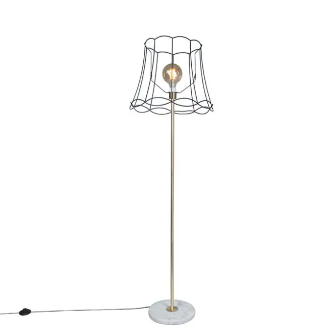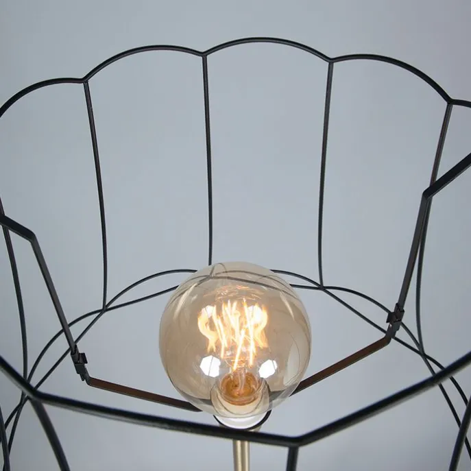 Retro vloerlamp messing met Granny frame zwart 45 cm – Kaso
