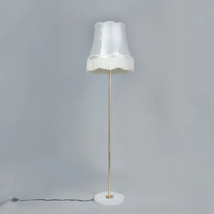 Retro vloerlamp messing met Granny kap crème 45 cm – Kaso