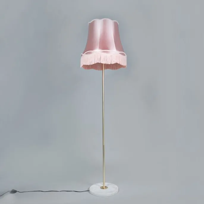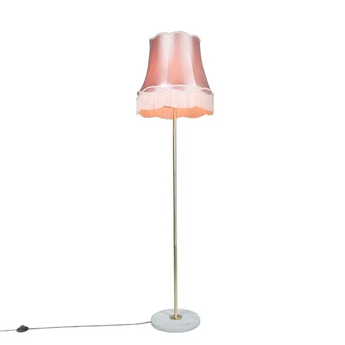 Retro vloerlamp messing met Granny kap roze 45 cm – Kaso