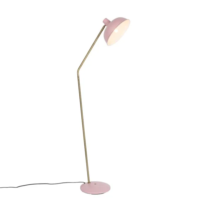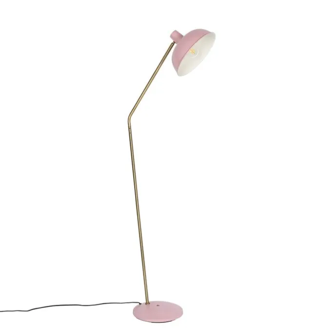 Retro vloerlamp roze met brons – Milou
