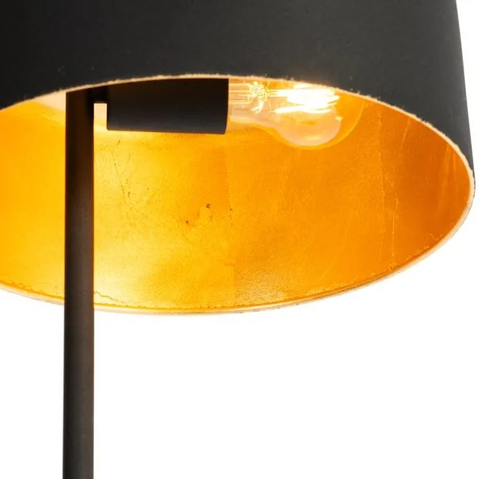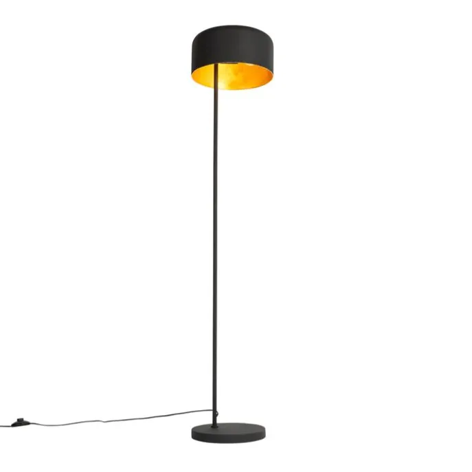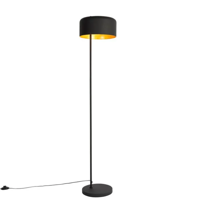 Retro vloerlamp zwart met gouden binnenkant – Jinte