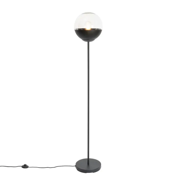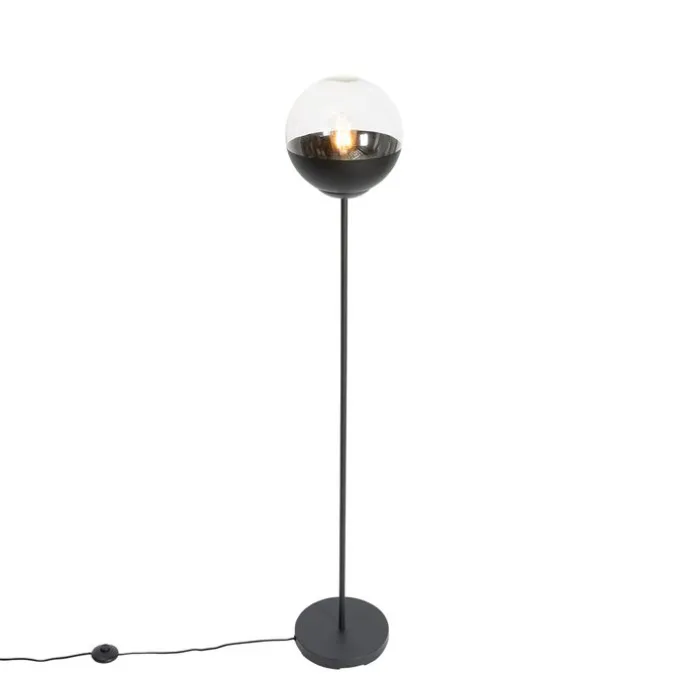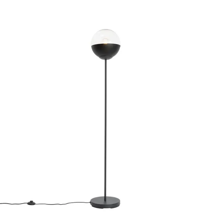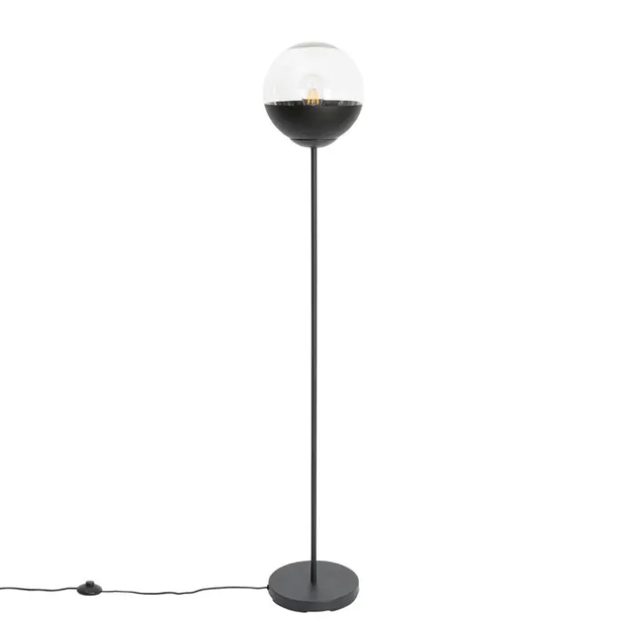 Retro vloerlamp zwart met helder glas – Eclipse