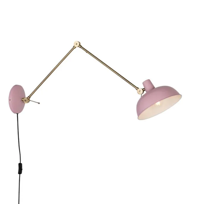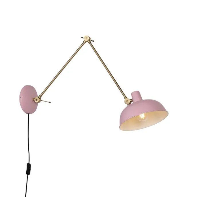 Retro wandlamp staal roze met brons – Milou