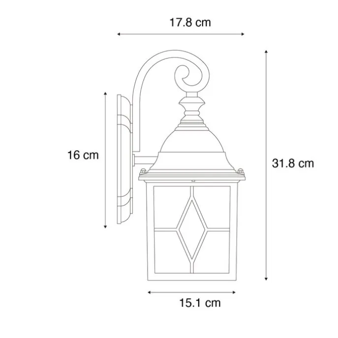 Ben je op zoek naar een klassieke, antiek aandoende buiten wandlantaarn? Dan is deze London echt iets voor jou! Door het sierlijke vintage design met ‘oud’ glas voeg je echt een vleugje stijl toe aan je voordeur/entree. Deze buiten wandlamp in hangende lantaarnvorm heeft een hoogte van 31,8 cm, een lengte van 15,1 cm en een breedte van 14,3 cm. Hij heeft een E27 fitting voor een lichtbron van maximum 60 Watt. Om het in de avond gezellig te maken kan je deze lamp ook dimmen (dimmer niet inbegrepen). Maak je tuin of voorgevel helemaal af met deze London!