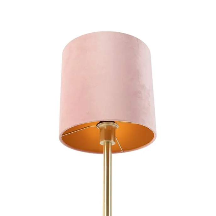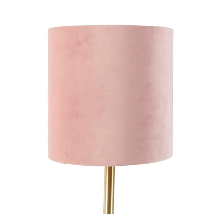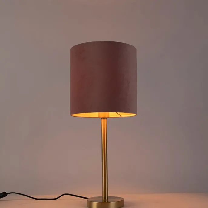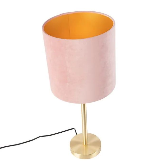 Romantische tafellamp messing met roze kap 25 cm – Simplo
