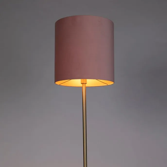 Romantische vloerlamp messing met roze kap 40 cm – Simplo