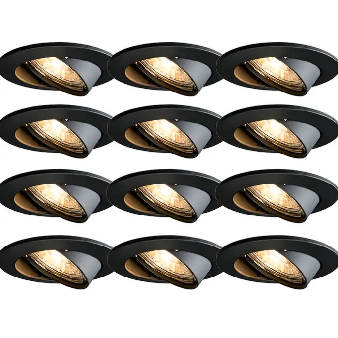Set van 12 moderne inbouwspots zwart kantelbaar – Edu