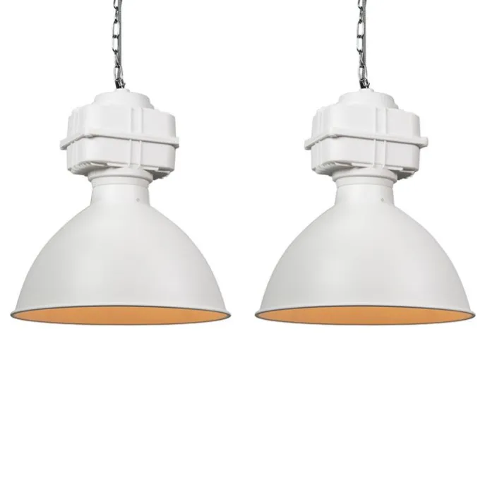 Set van 2 industriële hanglampen klein mat wit – Sicko