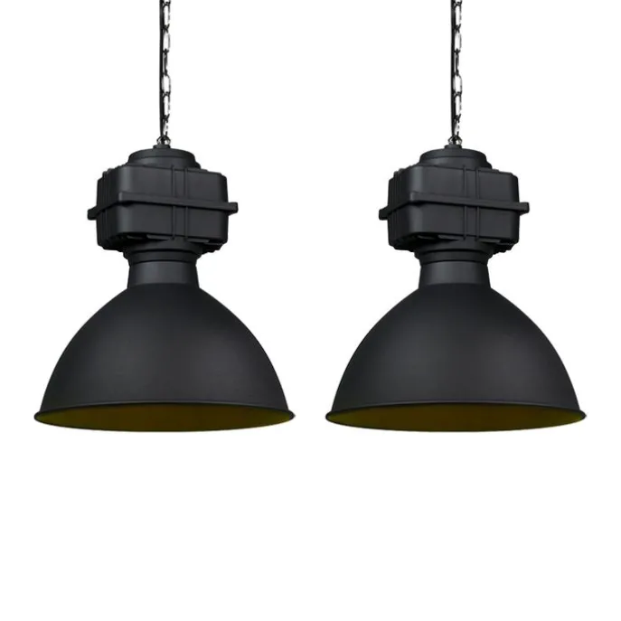 Set van 2 industriële hanglampen klein mat zwart – Sicko