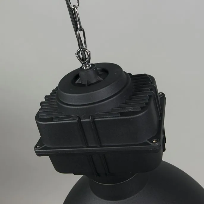 Deze industriële fabriekslampen geven je interieur net dat stoere randje. De lampen zijn vervaardigd uit metaal in een mat zwarte kleur. Hanglamp Sicko heeft robuuste details zoals het ophangsysteem en de details boven de kap. De kap van de lamp zorgt voor warm direct licht dat goed verspreid wordt. De lamp heeft een diameter van 38,5 cm en een hoogte van 150 cm. De montageplaat heeft een diameter van 10 cm. Het snoer heeft een lengte van 100 cm, deze kun je bij de installatie eventueel nog inkorten. Je maakt de lampen af met twee lichtbronnen met een fitting van E27 (max. 60 Watt). De lamp is dimbaar (dimmer niet inbegrepen). Haal deze mooie lampen nu in huis en geef jouw interieur die sfeertwist die het nodig heeft. Nu nog voordeliger als set van 2!
