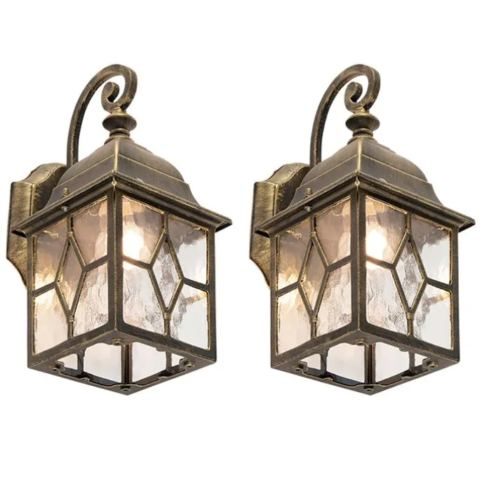 Ben je op zoek naar een klassieke, antiek aandoende buiten wandlantaarn? Dan is deze Londen set echt iets voor jou! Door het sierlijke vintage design met ‘oud’ glas voeg je echt een vleugje stijl toe aan je voordeur/entree.Deze set van 2 buiten wandlampen in hangende lantaarnvorm hebben elk een hoogte van 34 cm, een diepte van 18 cm en een lengte van 15 cm. Voeg zelf nog twee E27 lichtbronnen toe van maximum 60 Watt. Met zijn IP-waarde van IP23 kun je deze lampen overdekt buiten plaatsen. Om het in de avond gezellig te maken kan je deze lamp ook dimmen (dimmer niet inbegrepen). Maak je tuin of voorgevel helemaal af met deze Londen set van 2!