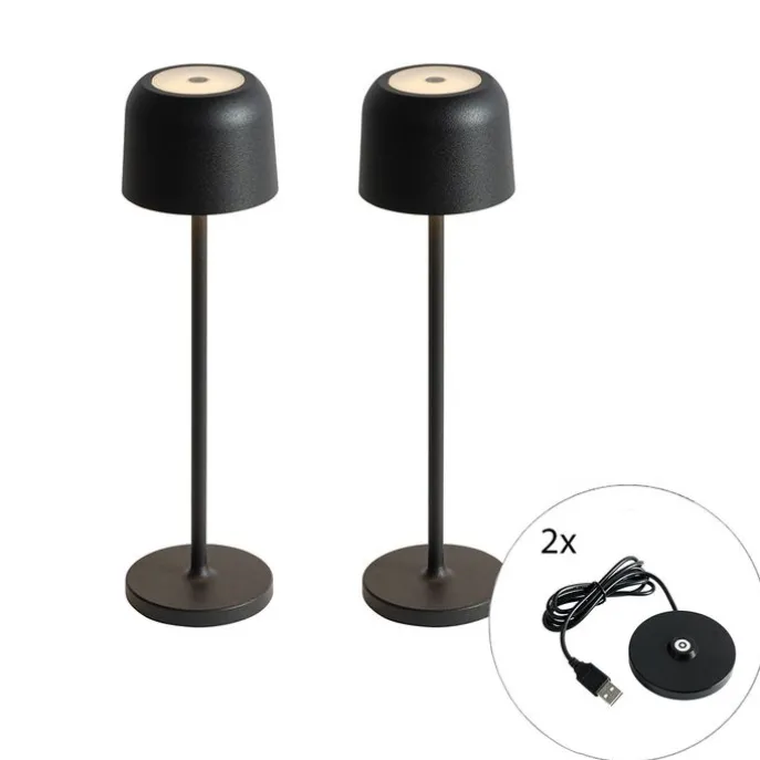 Set van 2 tafellampen mushroom zwart incl. laadstation – Raika