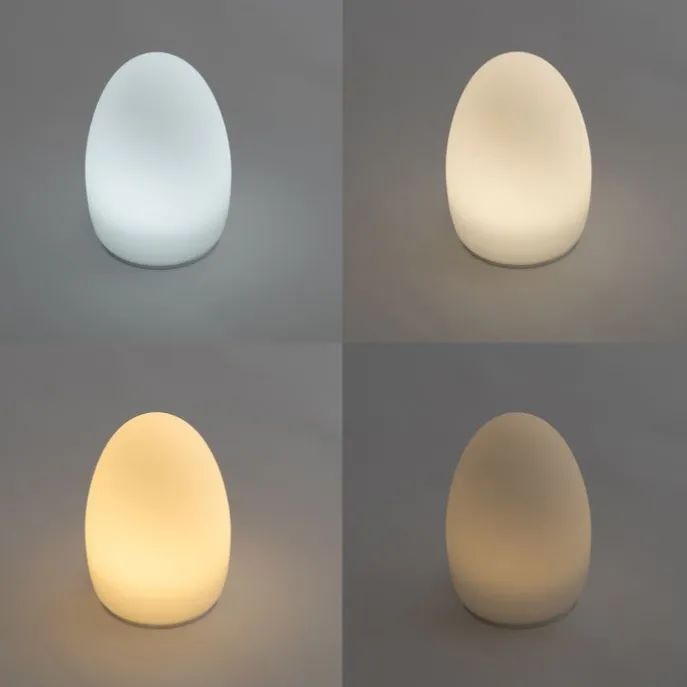 Breng een vleugje charme in je huis met de stijlvolle set van 2 tafellampen Eggo. Deze lampen, gemaakt van kunststof, hebben een witte kleur die moeiteloos bij elk interieur past. Met een hoogte van 24 cm en een diameter van 20 cm zijn ze perfect voor zowel tafels als nachtkastjes. De Eggo tafellampen bieden een lichtopbrengst van 2700K tot 6500K, variërend van warm wit tot helder wit licht. Bovendien beschikken ze over RGBW-verlichting, wat betekent dat de lamp licht geeft in alle kleuren van de regenboog. Deze lampen zijn volledig dimbaar en eenvoudig te bedienen met de mee geleverde afstandsbediening, zodat je altijd de perfecte lichtsterkte kunt instellen, zonder op te hoeven staan. Eggo heeft een ingebouwde timer, deze kan je instellen met de afstandsbediening. Met een IP waarde van IP44 zijn de Eggo tafellampen spatwaterdicht, wat betekent dat ze zonder zorgen in vochtige ruimtes zoals de badkamer of zelfs buiten onder een overkapping gebruikt kunnen worden. Deze set wordt geleverd met een handig oplaadstation, zodat je altijd een opgeladen lamp bij de hand hebt, zonder gedoe met kabels. Creëer de perfecte sfeer in elke ruimte met de veelzijdige en stijlvolle Eggo tafellampen. Bestel nu en ervaar zelf de magie van Eggo!
