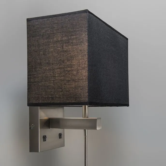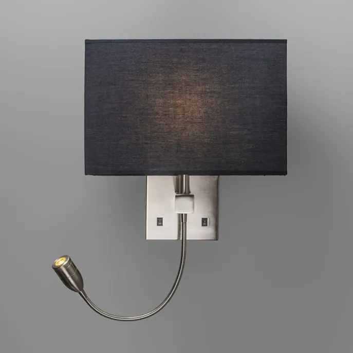 Set van 2 wandlampen staal met kap, leesarm incl. LED – Bergamo