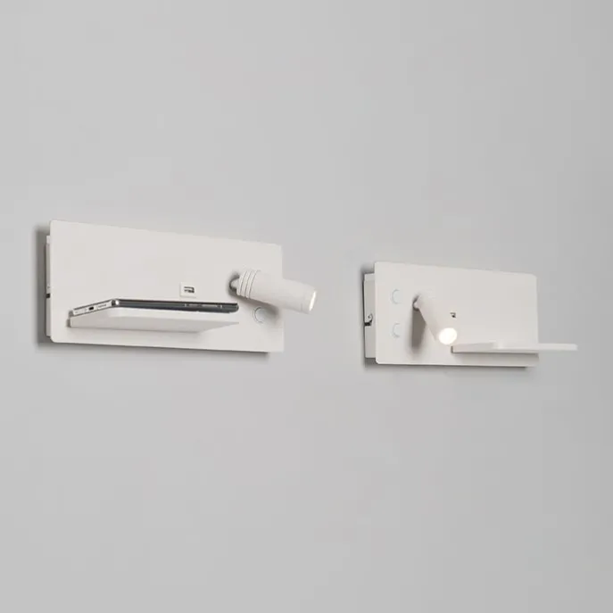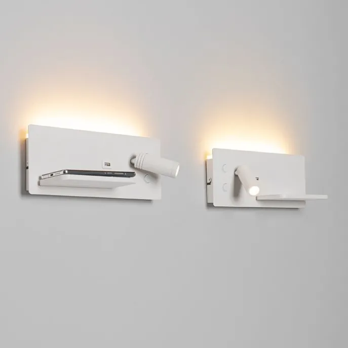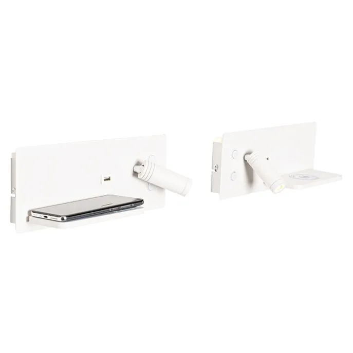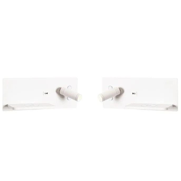 Set van 2 wandlampen wit incl. LED met USB en inductielader – Riza