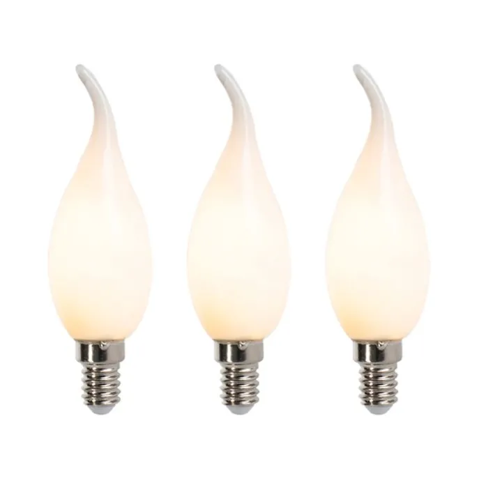 Set van 3 E14 dimbare LED filament tipkaarslampen F35 mat 3W