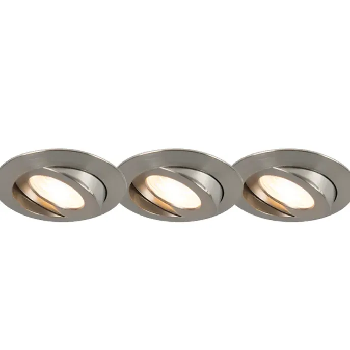 Set van 3 inbouwspots staal incl. LED IP44 – Relax LED