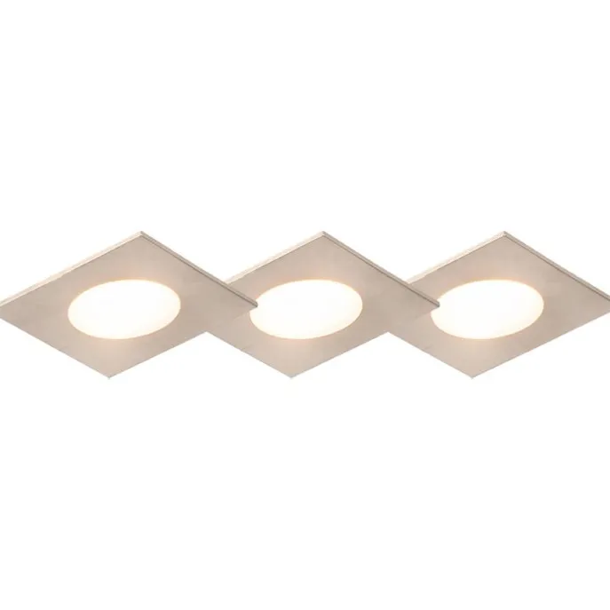 Set van 3 inbouwspots vierkant staal incl. LED IP65 – Simply