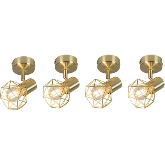 Set van 4 art deco spot messing draai- en kantelbaar – Mosh
