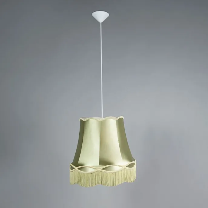 Authentiek in een nieuw jasje. Deze prachtige hanglamp Granny heeft het ontwerp van de oude lampenkap van je oma, maar dan met een nieuw stofje. Deze hanglamp past perfect in ieder interieur doordat het iets ouds maar zeker ook iets nieuws en moderns heeft. De lamp heeft een diameter van 45 cm en een hoogte van 120 cm. De montageplaat heeft een diameter van 10 cm. Het snoer heeft een lengte van 80 cm. Je maakt de lamp af met een lichtbron met een E27 fitting (max. 60 Watt), deze moet wel nog los bijbesteld worden. De lamp is dimbaar met een externe dimmer (dimmer niet inbegrepen). Door de prachtige stof en de mooie kleur is deze hanglamp Granny zeker een eye-catcher in jouw interieur! Nu nog voordeliger als set van 4!