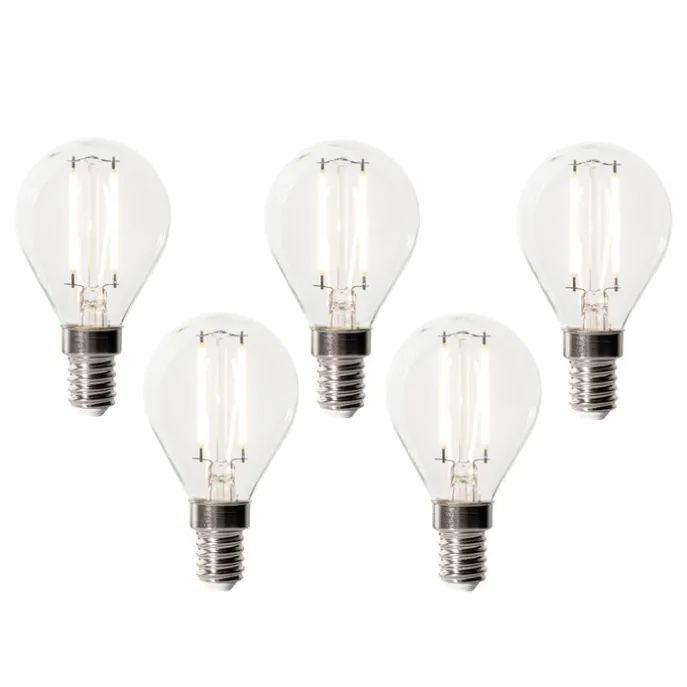 Set van 5 E14 dimbare LED lamp P45 helder glas 3W 250 lm 3000K