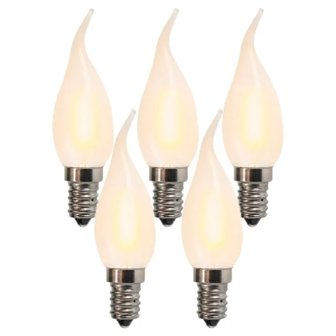 Nu nog meer voordeel bij lampenlicht! Vijf E14 fitting lichtbronnen voor een spotgoedkope prijs! Geef uw armatuur een sfeervol en sierlijk uiterlijk mee met deze mooie kaarslamp. Deze kaarslamp is uitgerust met een energiezuinige LED module waardoor je duizenden branduren zult gaan genieten van deze fraaie verschijning. Hij beschikt over 2200 Kelvin en 100 lumen. Zet een gezellig sfeertje neer in iedere ruimte met deze kaarslamp! Nu nog voordeliger als set van 5!