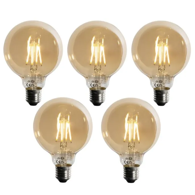 Set van 5 E27 3-staps dimbaar LED lamp goud G95 4W 450 lm 2700K