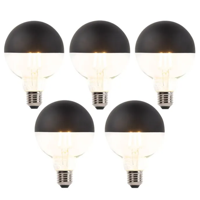 Set van 5 E27 dimbare LED filamentlamp kopspiegel G95 zwart 550lm 2700K