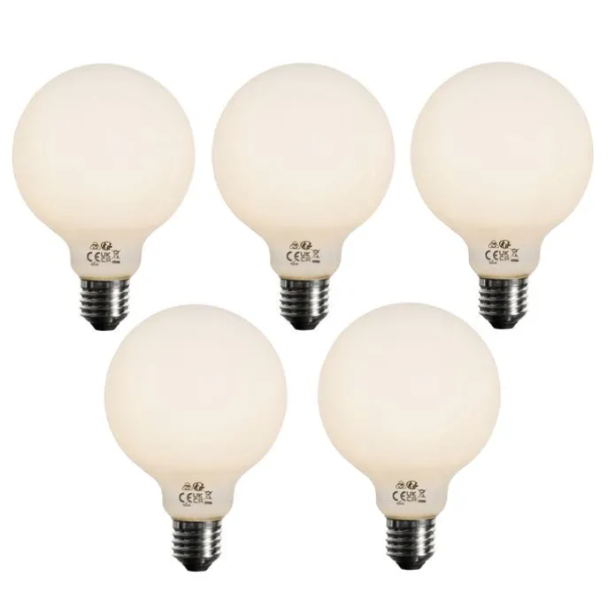 Set van 5 E27 dimbare LED lamp opaal G95 5W 450 lm 3000K