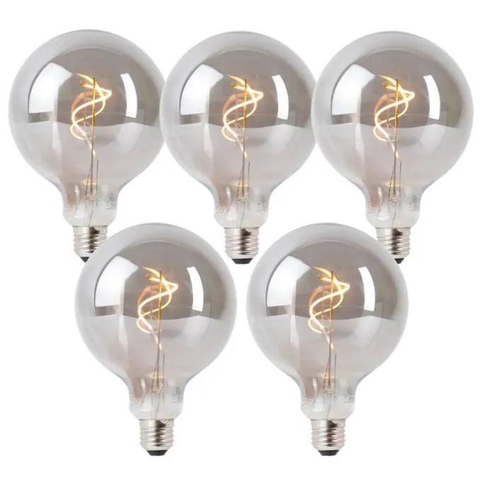 Set van 5 E27 dimbare LED lampen smoke G125 4W 130 lm 1900K