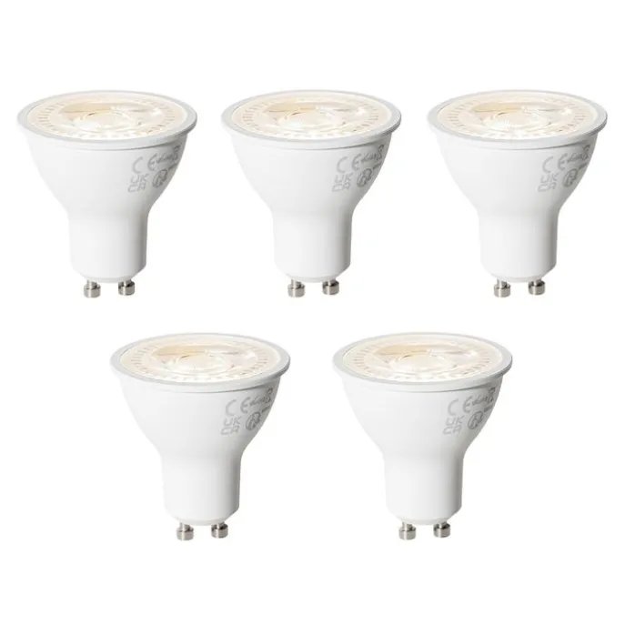 Set van 5 GU10 dimbare LED lampen 6W 450 lm 3000K