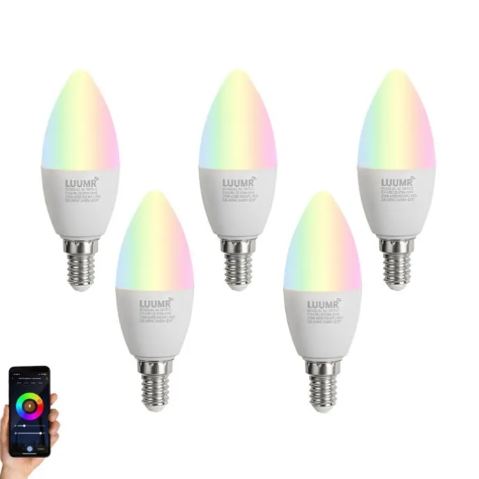 Breng kleur én gemak in huis met deze set van 5 Smart E14 LED lampen C37 in opaal afwerking! Met een speels kaarsvormig design en RGBW-functionaliteit tover je jouw ruimte in een handomdraai om naar elke gewenste sfeer: van knus warmwit tot een sprankelend kleurenspektakel. Ideaal voor kroonluchters, wandlampen of nachtkastjes die nét dat beetje extra mogen uitstralen.Dankzij de smart technologie bedien je deze lampen eenvoudig via je smartphone of smart home systeem. Stel timers in, dim het licht of kies uit miljoenen kleuren – allemaal met één druk op de knop.Slim, sfeervol en stijlvol: upgrade je verlichting vandaag nog!