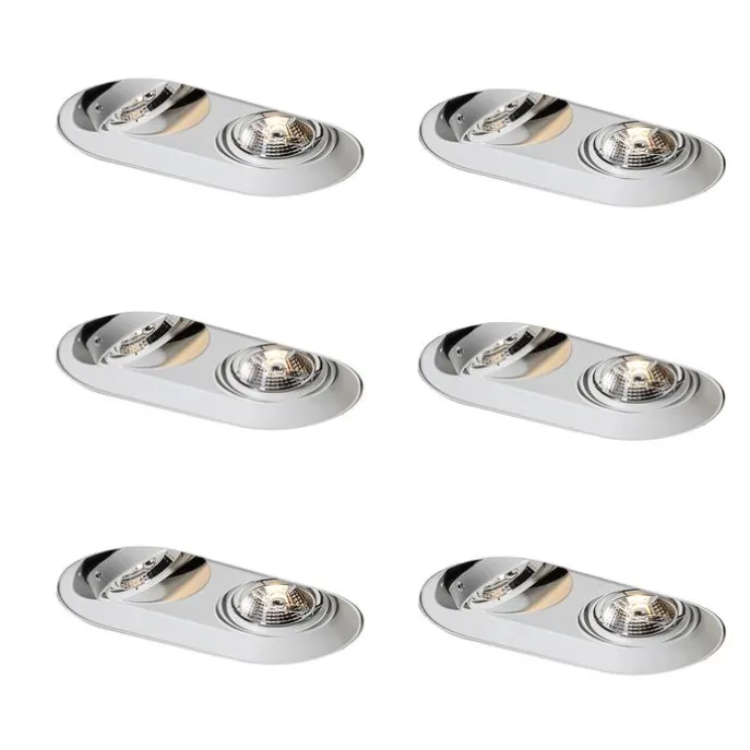 Set van 6 Afgeronde inbouwspot wit GU10 70mm 2-lichts – Hubs