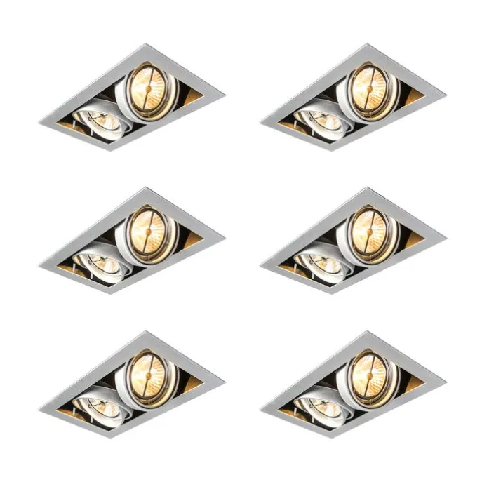 Set van 6 Inbouwspot staal AR111 verstelbaar 2-lichts – Oneon