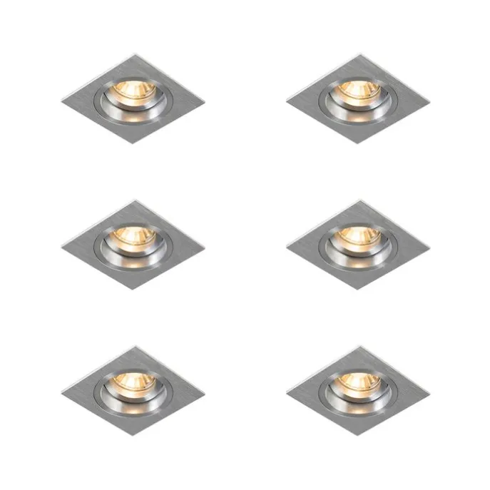 Set van 6 Inbouwspot vierkant aluminium draai- en kantelbaar – Chuck
