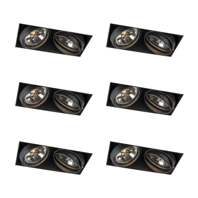 Set van 6 Inbouwspot zwart AR111 draai- en kantelbaar trimless 2-lichts – Oneon