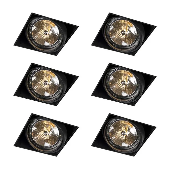 Set van 6 Inbouwspot zwart AR111 draai- en kantelbaar trimless – Oneon