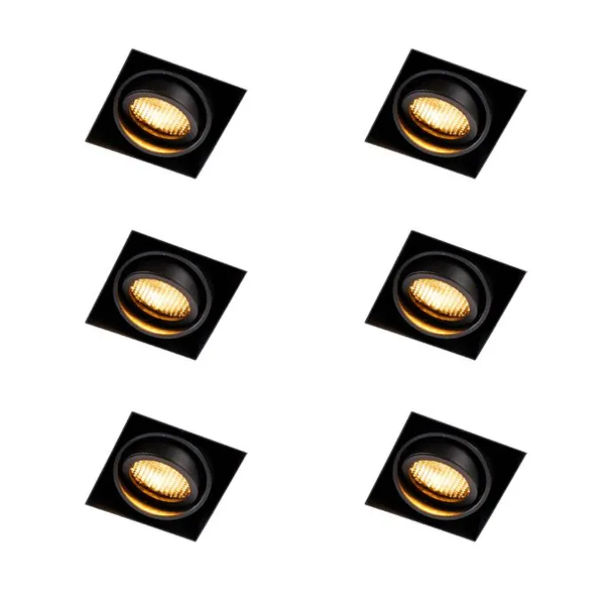 Set van 6 Inbouwspot zwart draai- en kantelbaar Trimless – Oneon Honey