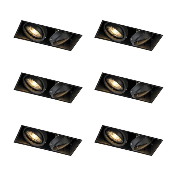 Set van 6 Inbouwspot zwart GU10 draai- en kantelbaar trimless 2-lichts – Oneon