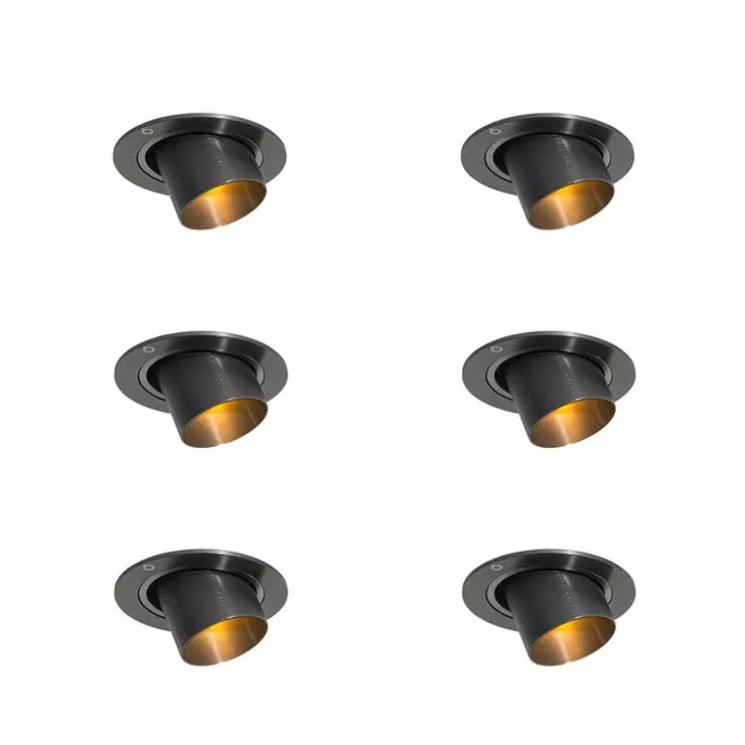 Set van 6 inbouwspots gunmetal GU10 35mm rond kantelbaar – Installa