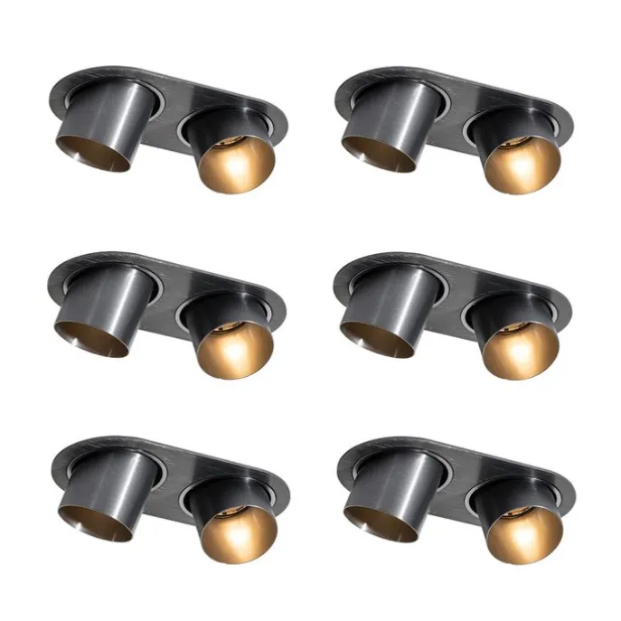 Set van 6 inbouwspots gunmetal GU10 50mm 2-lichts – Installa