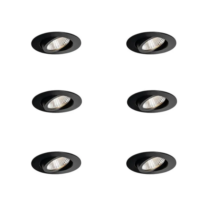 Set van 6 inbouwspots zwart 6,8cm incl. LED 750 lm dimbaar IP23 – Gaius