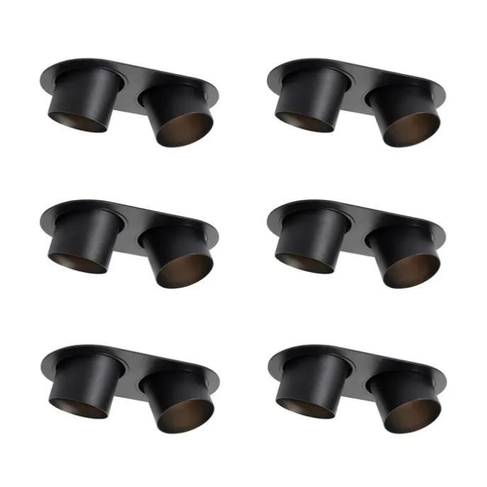 Set van 6 inbouwspots zwart GU10 70mm kantelbaar 2-lichts – Installa