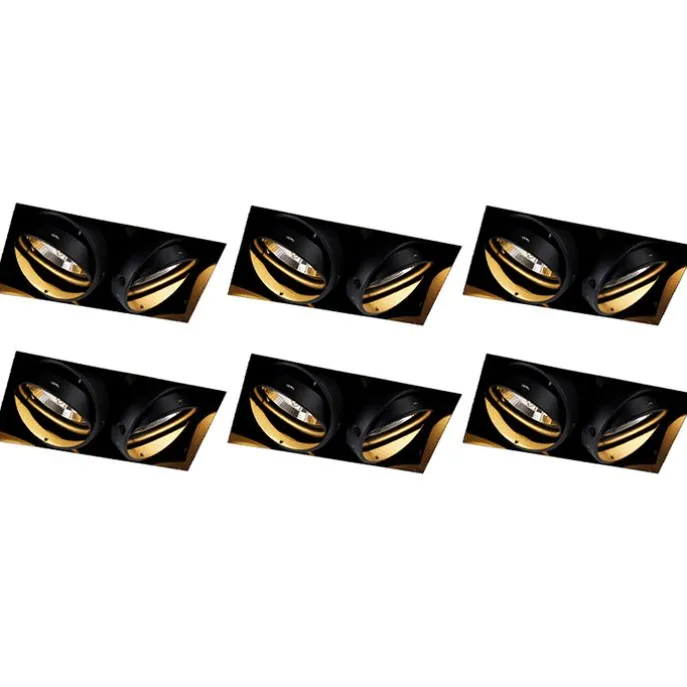 Set van 6 inbouwspots zwart GU10 AR111 trimless 2-lichts – Oneon