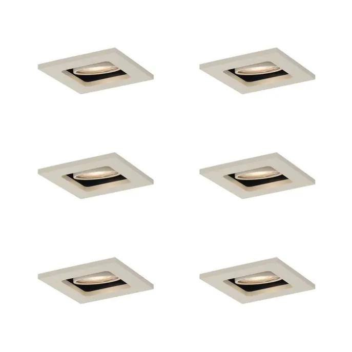 Set van 6 Moderne inbouwspot beige GU10 50mm draai- en kantelbaar – Qure