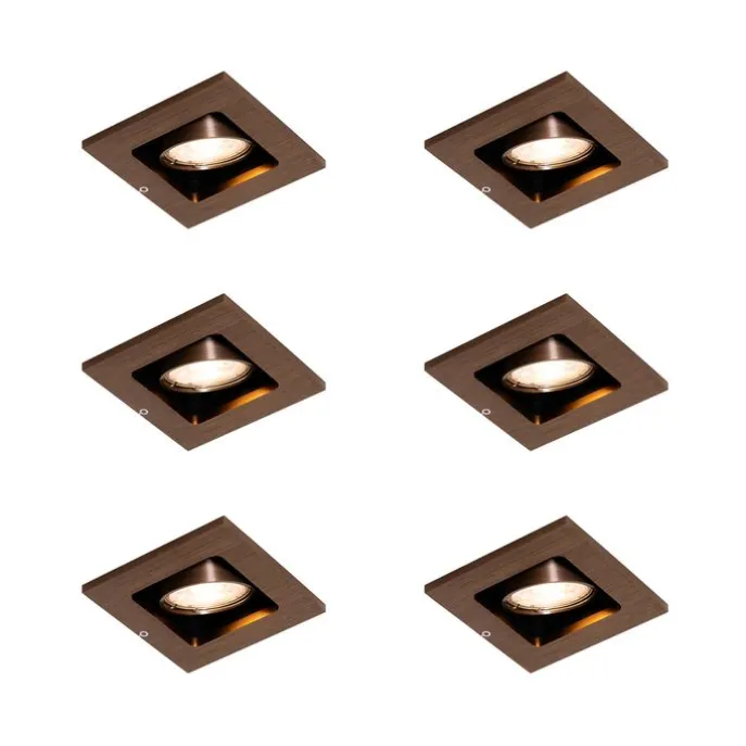 Set van 6 Moderne inbouwspot donkerbrons verstelbaar – Qure