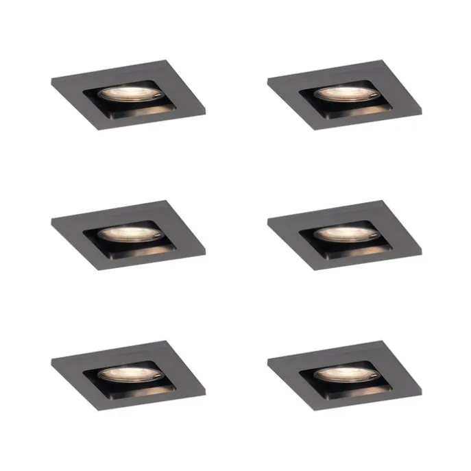Set van 6 Moderne inbouwspot gunmetal GU10 50mm rond kantelbaar – Qure