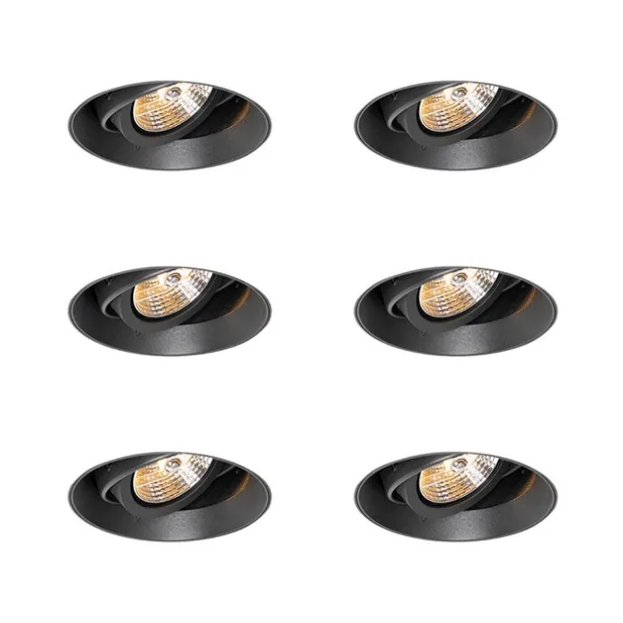 Set van 6 Moderne inbouwspot zwart GU10 AR70 rond trimless – Oneon